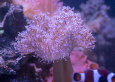 Výstava obsahuje více akvárií s korálovými útesy. Většinou jsou i plné ryb žijích nas útesech a rozhodně zajímavě řešené. Trochu zklamáním ale bylo převážující množství měkkých korálů, hub a sasanek. Z tvrdých korálů byli docela zastoupeny Montipory, Euphyllie sem tam Caulastrea. Vyzdvihnout musím i akvárium s krásnými Tubastreami, ale tím výčet končí. Nechápejte mě, prosím, špatně. Osobně nijak nesnižuji měkké korály, mám je rád a v akváriu je mám také, nicméně asi bych očekával alespoň jednu nádrž zaměřenou na vybarvené větevníky apod. Ano vím, je to vyšší dívčí a finančně náročnějsí oblast, ale kde jinde než u profesionálů bych je měl hledat (když nepočítám potápění se v Rudém moři).