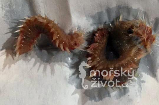 Dalšími z nevítaných hostů, ale také užitečnými obyvateli živých kamenů jsou Hadice – něco jako hvězdice (tedy také ostnokožci), ale liší se od hvězdic délkou a tloušťkou jednotlivých ramen. Hadice, které si většinou do akvária zavlečeme, nebudou žádní obři, mohou mít cca kolem 5-8 cm (i s rameny) a jsou vytrvalými konzumenty organických zbytků. Je zábavné pokoušet se je krmit, protože podávané sousto ovinou ramenem a nasoukají si jej do střední části těla, kde mají ústa. Neviděl jsem nikdy hadice požírat koráli, proto je považuji za jednoznačně kladné obyvatele a užitečné členy úklidové čety.